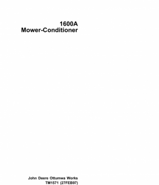 Technical Manual John Deere 1600 Mower Conditioner, Operation and Tests.This manual contains high quality images, diagrams, instructions to help you to operate, maintenance, Remove, troubleshooting, and repair your Mower Conditioner.