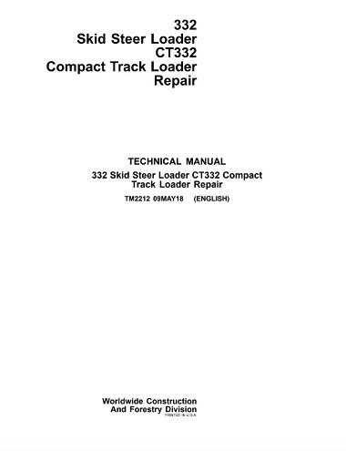 John Deere 332 Skid Steer Loader ,CT332 Compact Track Loader Repair Technical Manual