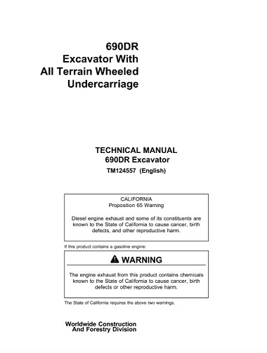Technical Manual John Deere 690DR Excavator.This manual contains high quality images, diagrams, instructions to help you to operate, maintenance, Remove, troubleshooting, and repair your Excavator. John Deere 690DR Excavator Pdf Manual Sample Preview Language: English…