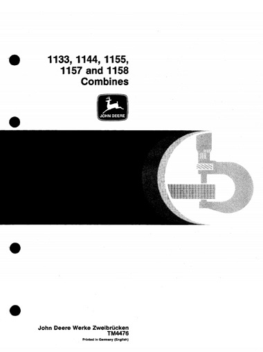John Deere 1133, 1144, 1155, 1157, 1158 Combines Technical Manual