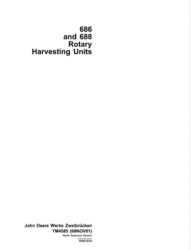 John Deere 686, 688 Rotary Harvesting Units Technical Manual