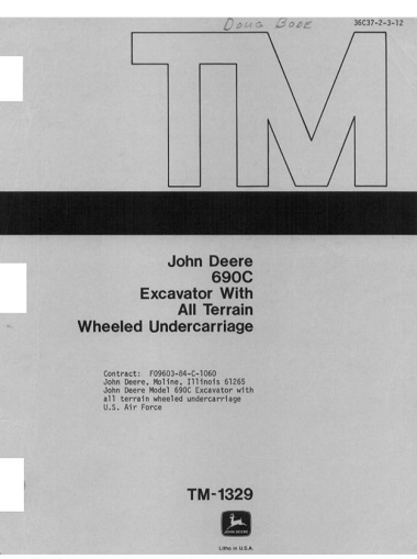 John Deere 690C Excavator With All Terrain Wheeled Undercarriage Technical Manual