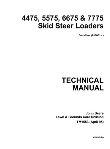 John Deere 4475, 5575, 6675, 7775 Skid Steer Loaders Technical Manual