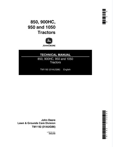 John Deere 850, 900HC, 950, 1050 Tractors Technical Manual