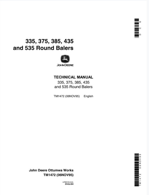 John Deere 335, 375, 385, 435, 535 Round Balers Technical Manual