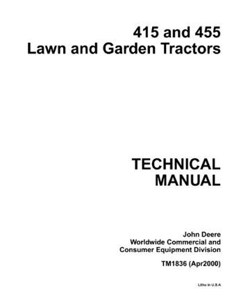 John Deere 415, 455 Lawn And Garden Tractors Technical Manual