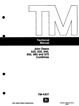 John Deere 925, 935, 945, 955, 965, 975 Combines Technical Manual