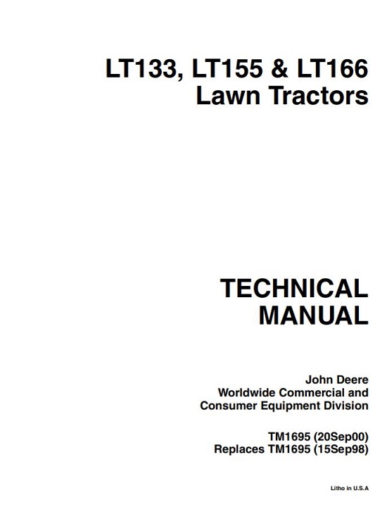 John Deere LT133, LT155, LT166 Lawn Tractors Service Technical Manual
