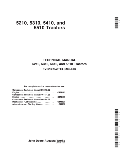 John Deere 5210, 5310, 5410, 5510 Tractors Technical Manual