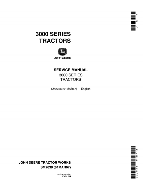 Technical Manual John Deere 3000 Series Tractors.This manual contains high quality images, diagrams, instructions to help you to operate, maintenance, Remove, troubleshooting, and repair your Tractors. Language: English Format: PDF,794 pages File size: 55 MB…