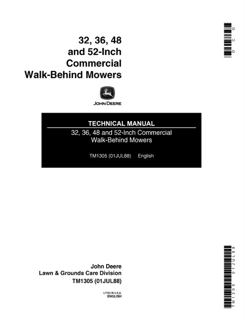 John Deere 32, 36, 48, 52-Inch Commercial Walk-Behind Mowers Technical Manual