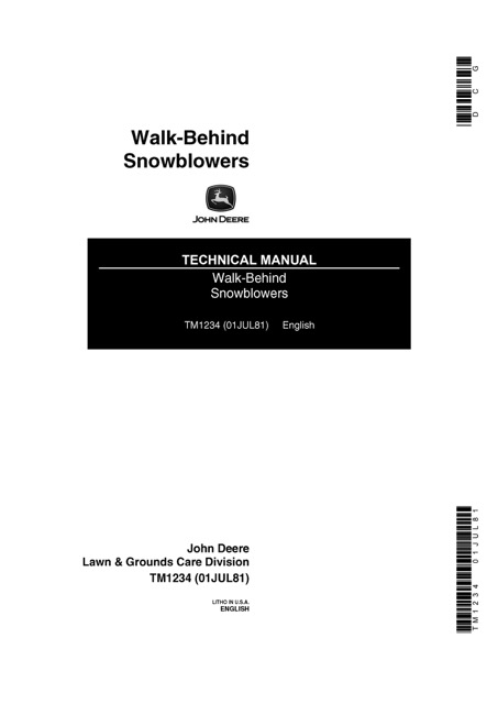 Technical Manual John Deere Walk-Behind Snowblowers.This manual contains high quality images, diagrams, instructions to help you to operate, maintenance, Remove, troubleshooting, and repair your Snowblowers. Language: English Format: PDF,174 pages File size: 10 MB Compatible…