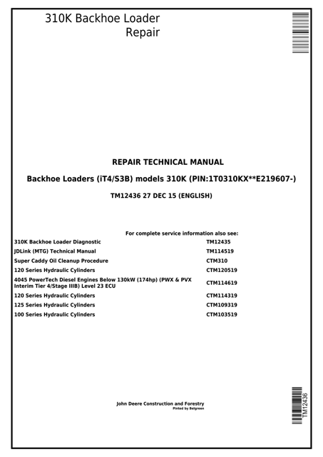 John Deere 310K Backhoe Loader Repair Technical Manual