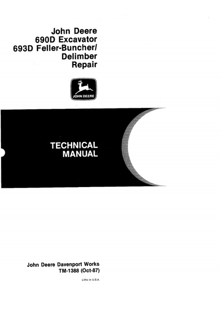 John Deere 690D Excavator, 693D Feller-Buncher, 693D Delimber Repair Technical Manual