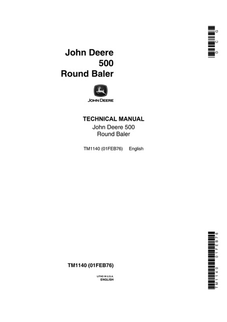 John Deere 500 Round Baler Technical Manual