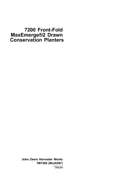 John Deere 7200 Front-Fold MaxEmerge2 Drawn Conservation Planters Technical Manual