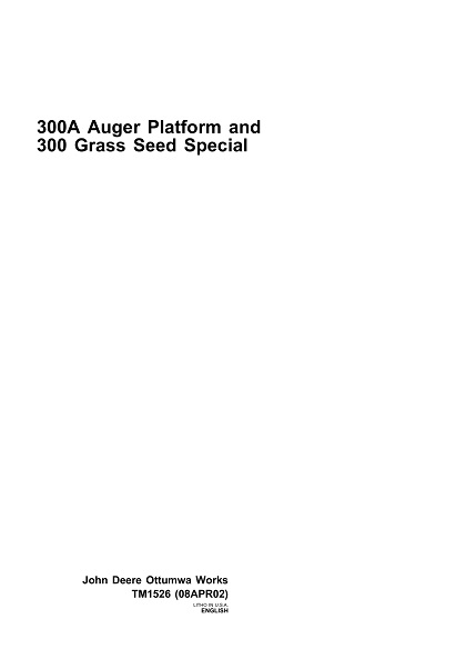 John Deere 300A Auger Platform, 300 Grass Seed Special Technical Manual