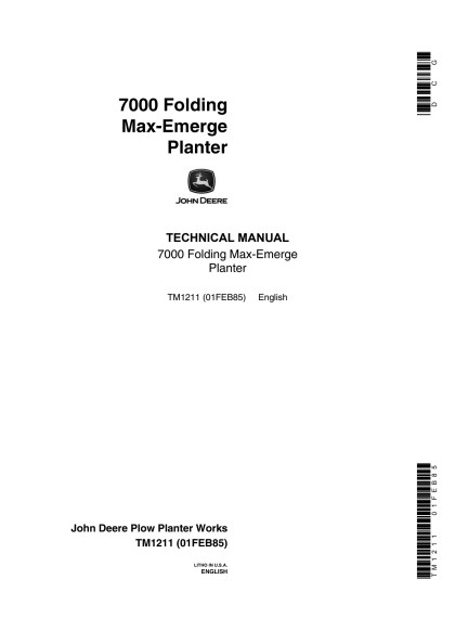John Deere 7000 Folding Max-Emerge Planter Technical Manual