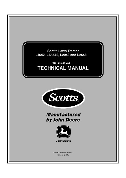 John Deere L1642, L17.542, L2048, L2548 Scotts Tractor Technical Manual